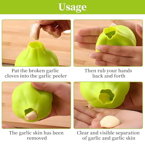 - 【Easy to Clean】: Silicone Garlic Peeler The silicone material is non-porous, stain-resistant, and can be easily rinsed under running water or cleaned in the dishwasher.