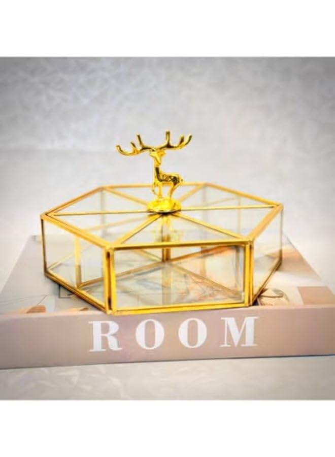 generic - صندوق ديكور زجاجي سداسي الشكل مع غطاء على شكل غزال من ناما