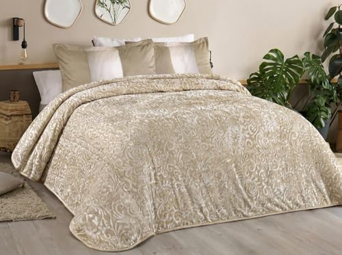 Generic - Nana Secret 2 Layer Laser Engraving Blanket, Dark Coffee, 220x240cm, 5K, Laser Engraved Velour, Baroque Pattern, Classical Elegant