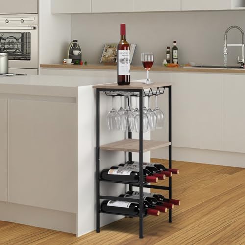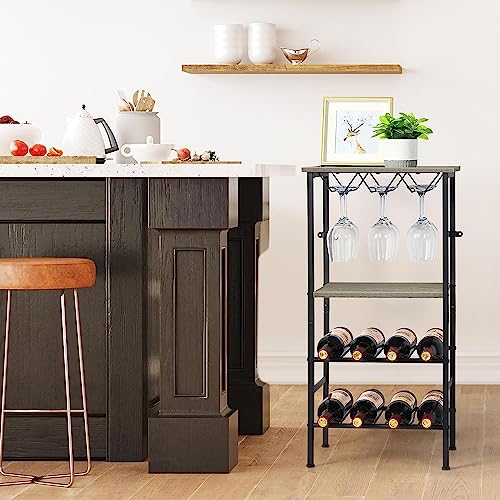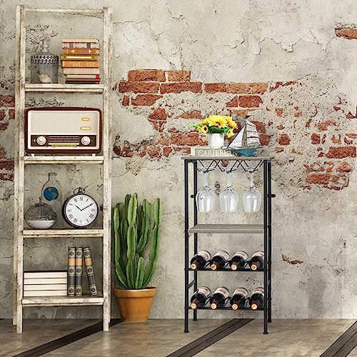NANANARDOSO - طاولة رف مشروب من ناناناردوسو بار ومشروبات قائم بذاته دولاب تخزين ومشروب بحامل زجاجات زجاجية خزانة صناعية مصنوعة معدن وخشب للمنزل مشروبات كحولية أرضية لون رمادي