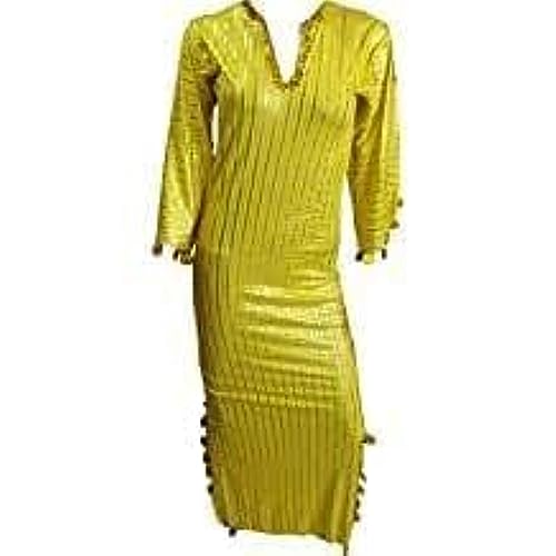 Generic - Nancy Luxury Jalabiya Sequin Embroidery Sleeveless Yellow Dress (New Year, Maxi, Handmade)