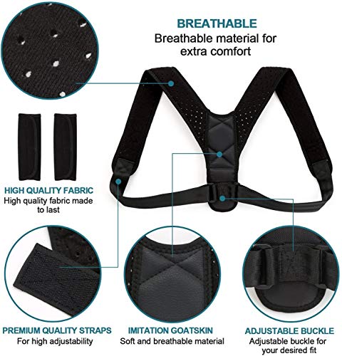 Nanet - Nanet Posture Corrector Posture support Brace Adjustable Straight Strap for Men and Women (Size L 28-50 in. / 70-120 cm Unisex) (Black, Large)