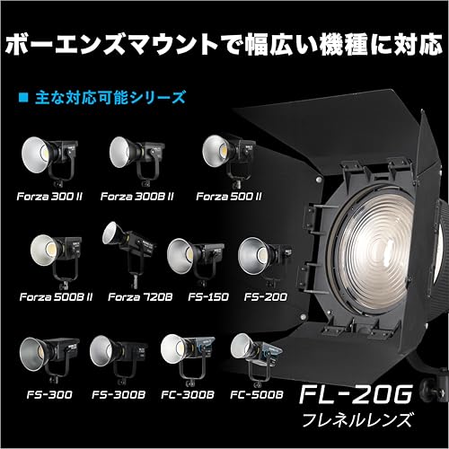 NANLITE - NANLITE FL-20G Fresnel Lens with Barn Door, Bowens Mount, Adjustable Range: 10° to 45°, Domestic Genuine Product