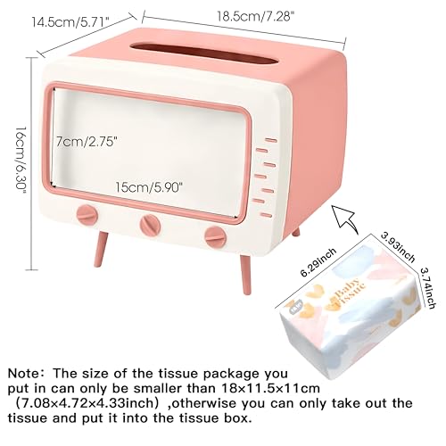 - The innovative tissue box holder features a unique TV-shaped design that not only serves as a functional tissue dispenser compatible with various mobile devices but also adds a playful and decorative element to your space. Its multitasking nature makes it ideal for both bedroom and office settings, providing organization and style.