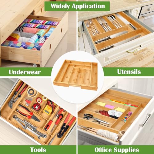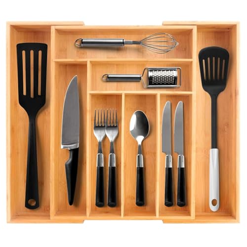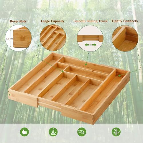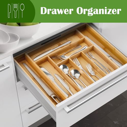 - Premium Material - The cutlery tray is made of durable and sturdy bamboo, BPA free that is more healthy and environmental friendly, built to last for a long time and adds a natural touch to your kitchen.