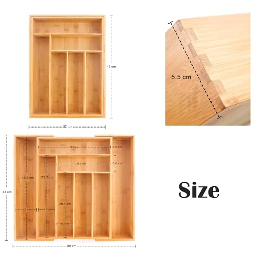 - Expandable Layout - The tray's height 4.5 cm, width 32 cm, length 43 cm, which is expandable to 50 cm. Provides 6 to 8 compartments that will be fully stored in a variety of ways to maximize your space, whether you prefer separate compartments or larger sections.