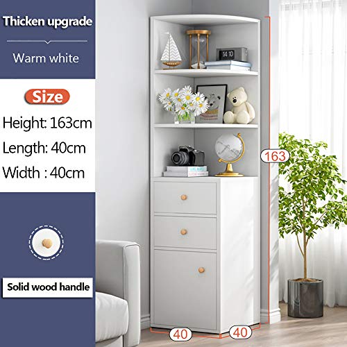 NAR - NAR Corner Storage Cabinet, Free Standing Pantry Cabinet with 2 Drawer and 3 Shelves, Home Office Furniture Bookcase, Side Cabinet, Cupboard, Wood Cube Organizer (G153-White L)