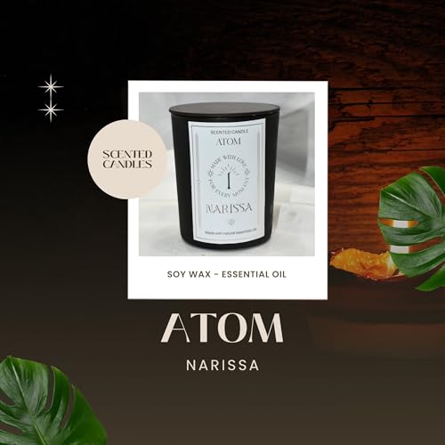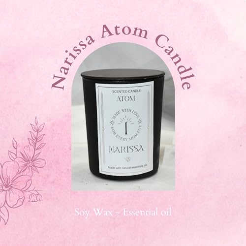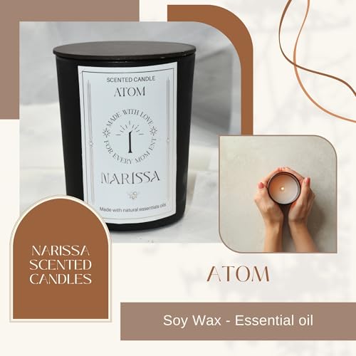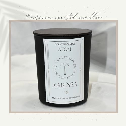 Narissa - Narissa Atom Premium Scented Candle - Soy Wax, 12% Essential Oil, 150g Black Glass Jar, Elegant Long Lasting Design, Distinctive Scent (Oud)