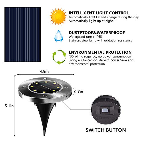 Nasharia - Pack of 4 Solar Lights Garden, 8 LEDs Solar Floor Lights Outdoor Solar Garden Lights Bright White Solar Lamps IP65 Waterproof Floor Spotlight Light Garden Landscape Lighting for Lawn