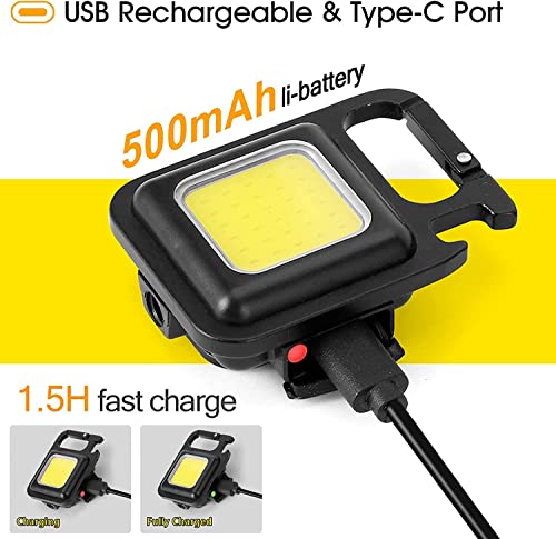 NASONEB - سلسلة مفاتيح LED متعددة الوظائف من ناسونيب مع فتاحة زجاجات، قاعدة مغناطيسية ودعامة قابلة للطي صغيرة سي او بي 500 لومن قابلة لاعادة الشحن (اسود)