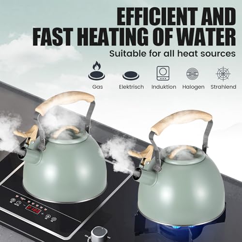 - 3 L large capacity: this kettle gas stove and kettle for induction hob has a capacity of 3 L, which is sufficient for preparing tea, coffee or milk; by boiling water once, the drinking needs of the whole family can be covered without having to boil water repeatedly; this kettle for wood stove and kettle for gas stove saves time and is perfect for the use with the whole Family or parties
