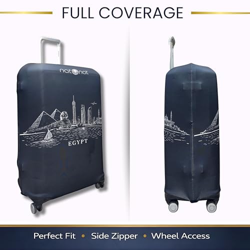 natOnat - غطاء واقي لحقائب السفر من ناتونات - غطاء حقيبة سفر - قابل للتمدد وقابل للغسل من السباندكس والبوليستر - يحمي من الاوساخ والخدوش - تصميم افق مصر - يناسب ارتفاع 72-81 سم (مقاس XL)
