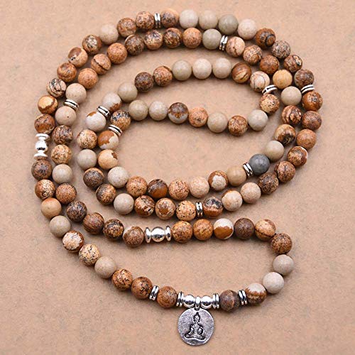 Self-Discovery - Natural 108 Mala Beads Bracelet Necklace Meditation Jewelry with Yoga Charm, 19 inches, Stone