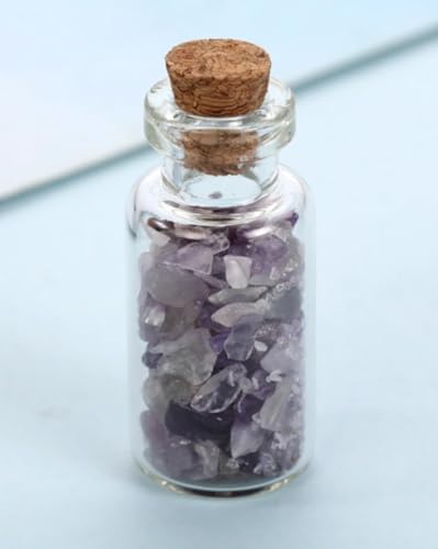 Generic - قطع كريستال الجمشت الطبيعية في زجاجة زجاجية مع سدادة من الفلين، لون أرجواني