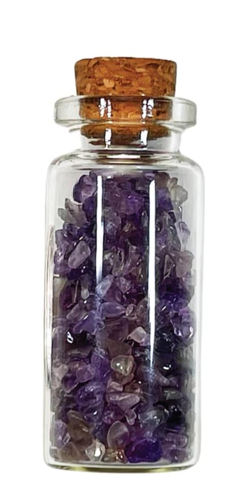 - تصميم التخزين: زجاجة زجاجية مدمجة مع سدادة فلين آمنة، مثالية للحفاظ على رقائق الجمشت منظمة ومحمية.
