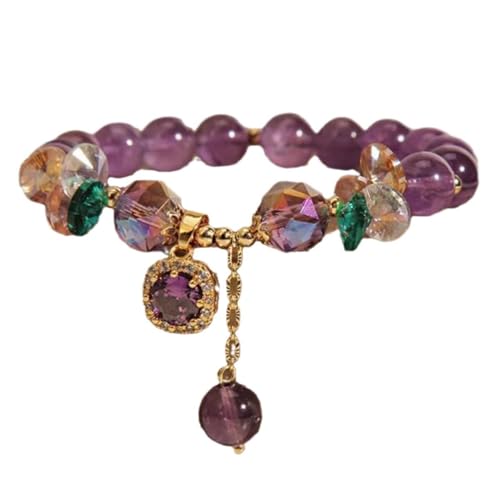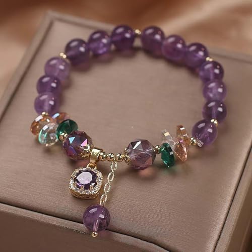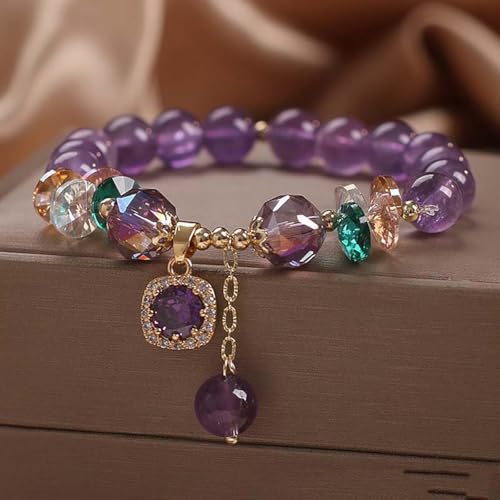 fashion mania - Natural and precious purple crystal bracelet for ladies. Exquisite zircon heart pendant beads bracelet. Gift hand ring accessory.