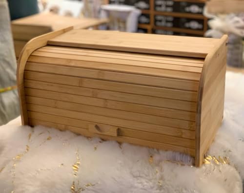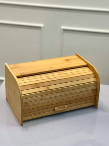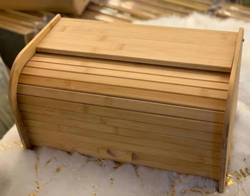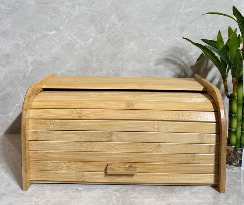 Generic - صناديق خبز من الخيزران الطبيعي للمطبخ حاويات تخزين الخبز صندوق بغطاء علوي ملفوف لسطح الطاولة طبيعي