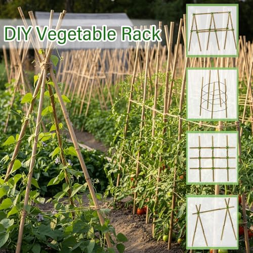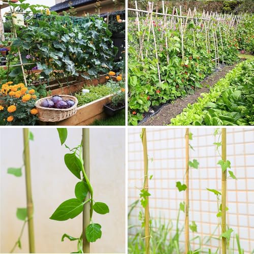 - Easy Installation, Adjustable Length-Installing the bamboo stakes is simple—just insert them into the soil. If the length is not suitable, you can easily cut them to your desired size, making them perfect for building trellises or tents to provide natural support for climbing plants. Tip: If the ground is soft and warm, installation is easy. For hard or frozen ground, we recommend using installation tools for assistance.