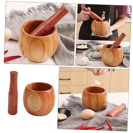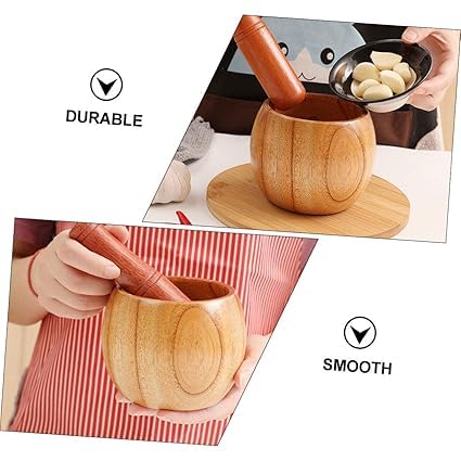Generic - Natural Beech Wood Mortar Large Mortar for Grinding Spices, Spices and Herbs Elegant Design Durable Egyptian Kitchen Daily Use with Easy and Excellent Capacity | From Generic