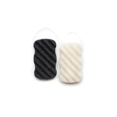 - DUAL PACK: Set of two exfoliating body sponges in classic black and white colours, featuring an elegant wave pattern design