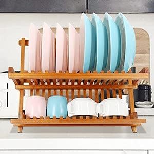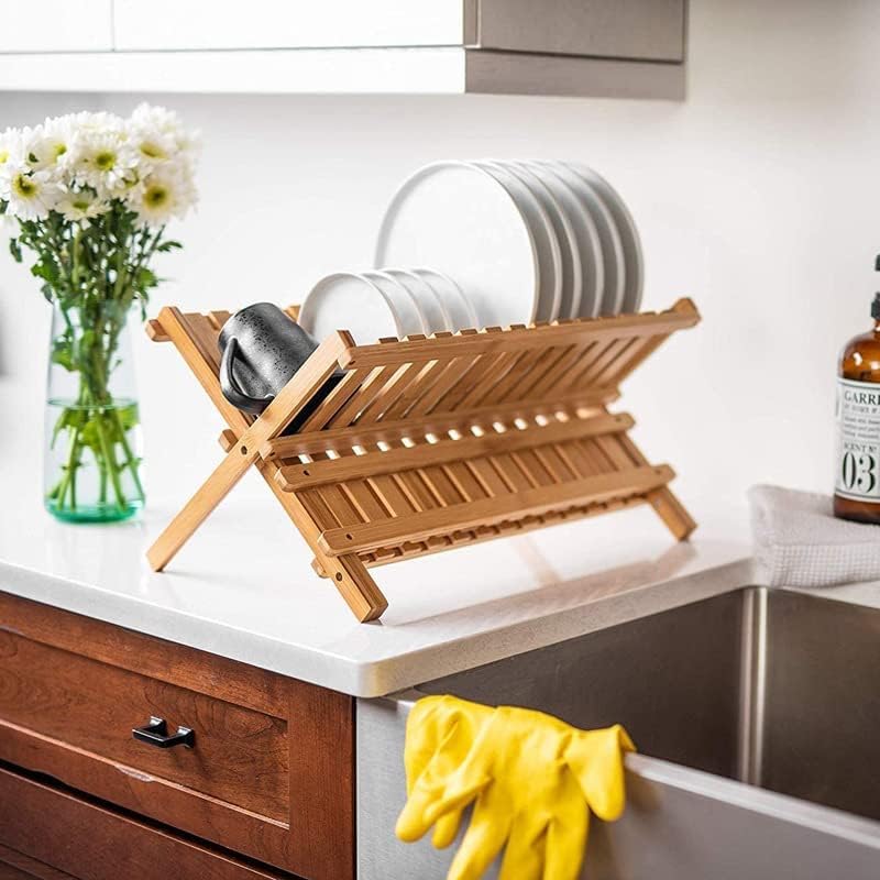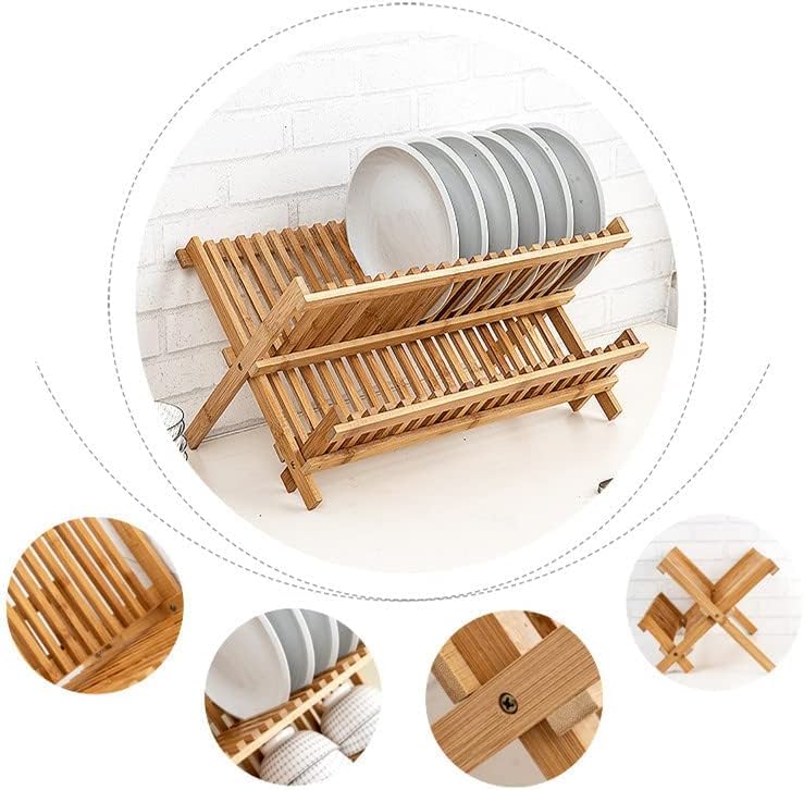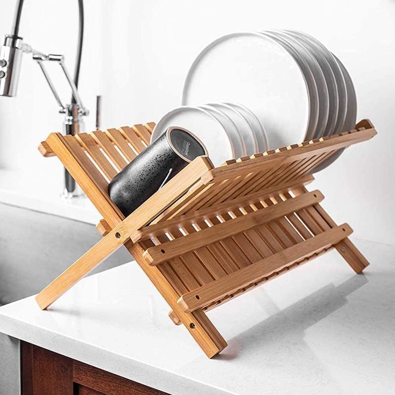 - FOLDABLE & PORTABLE: The Dish Rack features a X-shape design, folds flat when you need a clean, grippy free working surface. Measures 17.9 X 9.6 Inches. Lightweight and easy to use, it brings great color tone to your kitchen with other wood kitchen utensils.