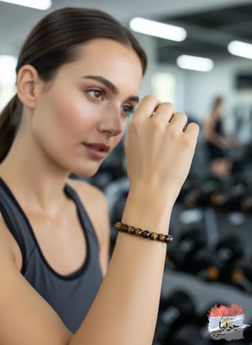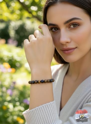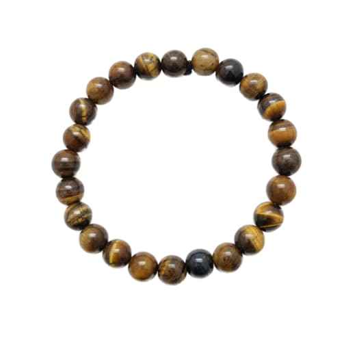 Julia Store - Natural Gem Stones Semi Precious Gemstone Lapis, Red Agate, Malachite, Jade, Tiger Eye, Suleimani Agate And Amethyst 8mm Round Beads Stretch Bracelet 7 Inch Unisex Women Men (Tiger Eye)