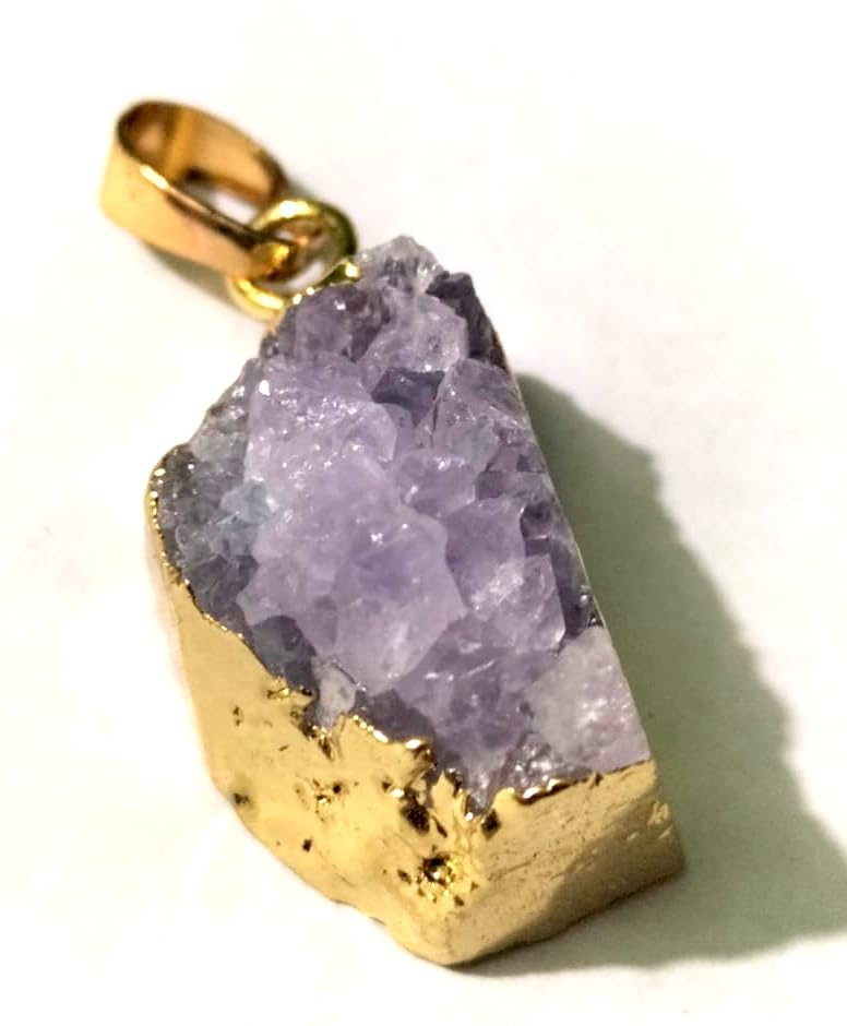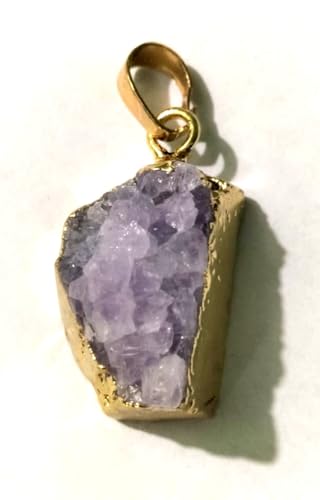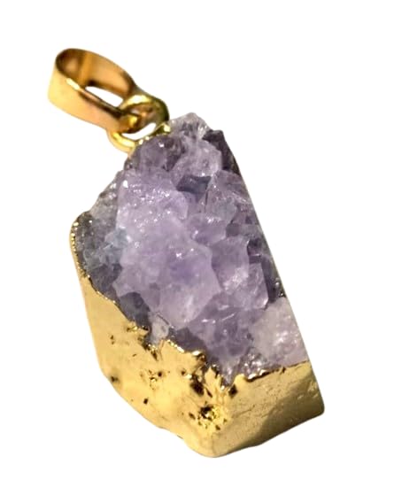 Generic - احجار كريمة طبيعية دلاية سلسلة حجر الأماثيست جمشت البنفسجي الطبيعي الرائع - خام طبيعي باطار ذهبي شكل مميز مناسب للجنسين طبيعي اصلي تماما - رائع لسحب الطاقة السلبية و رفع الحالة المعنوية (7)