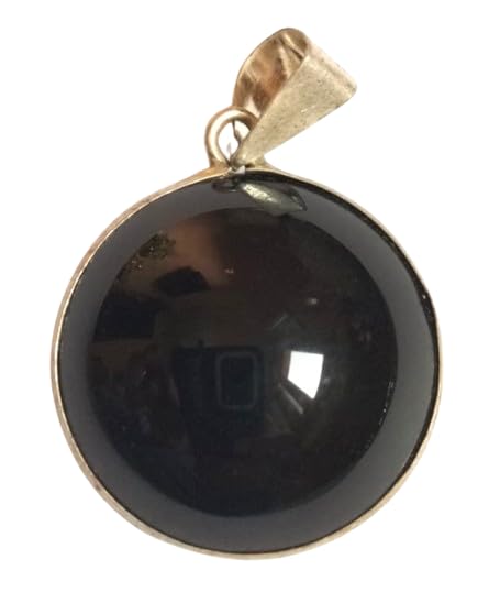 Generic - Natural Gemstone Silver Frame Pendant Natural Black Agate Stone (Large Size) Round Shape - Great Gift for Unisex