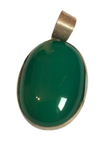 Generic - Natural Gemstone Silver Frame Pendant Natural Green Agate Stone (Medium Size) Oval Shape - Great Gift for Unisex