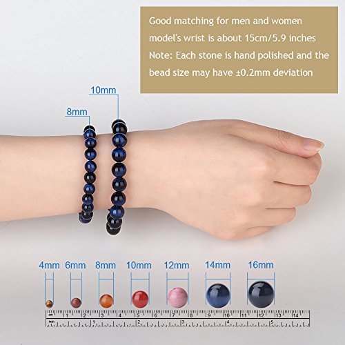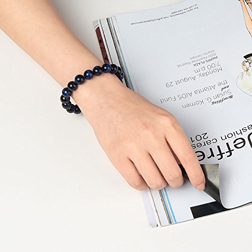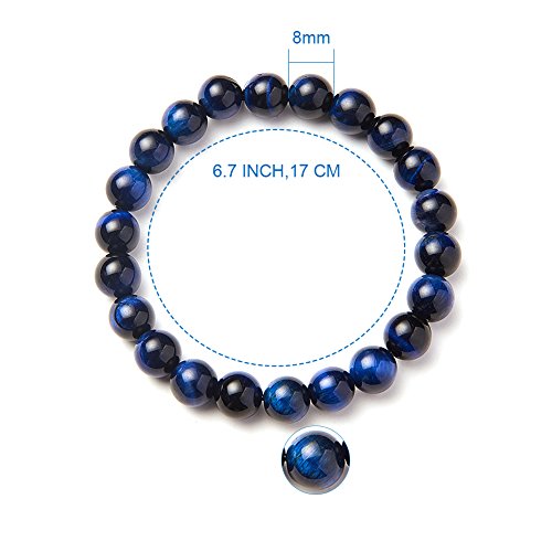 generic - Natural Genuine Gemstones Hawk Eye Bracelet 8Mm Round Beads About 7" Unisex Blue Tiger Eye, Stone, One Size