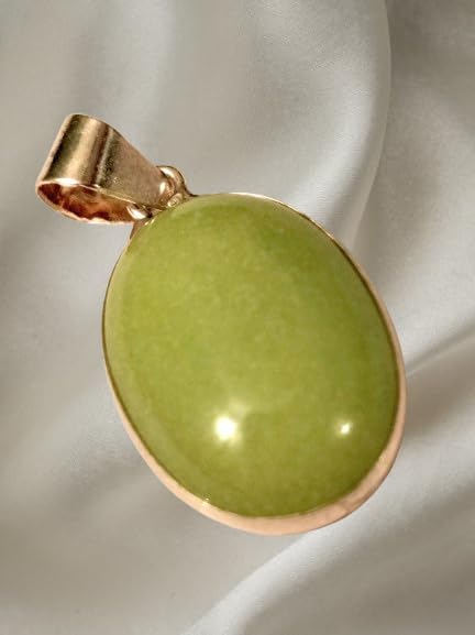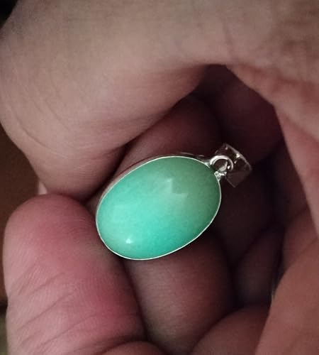 Generic - قلادة حجر الطاقة الأخضر الطبيعي مع إطار فضة عيار ٩٢٥، مجوهرات للطاقة الإيجابية