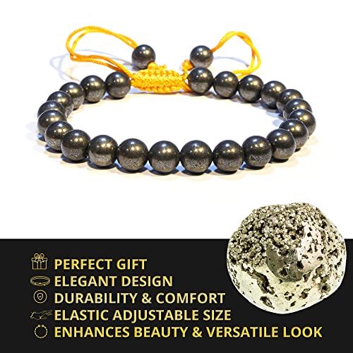 ANAYA AGATE - سوار بيريت طبيعي، اساور كريستال علاجية للنساء والرجال، اساور خرز دائرية 8 ملم لجذب المال والثروة والازدهار والطاقة الايجابية، سوار خرز من الاحجار الكريمة مقاس قابل للتعديل