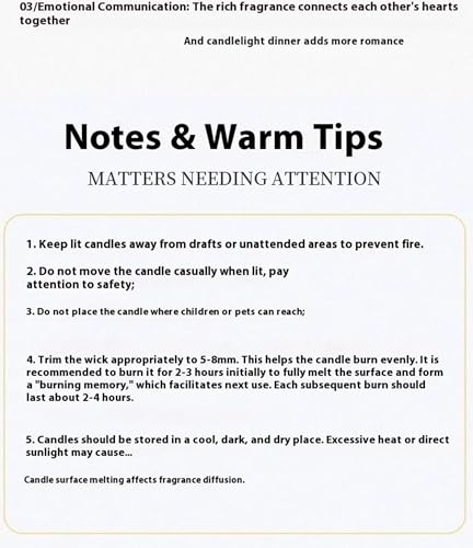 - 🕯️ Long Lasting & Clean Burn | احتراق نظيف يدوم طويلاً Designed for steady, even burning that fills your space with beautiful aroma. مصممة لاحتراق متوازن يمنح منزلك رائحة جميلة تدوم.