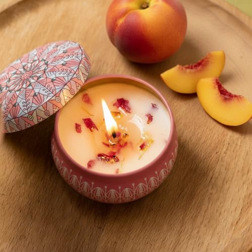 Generic - Natural Scented Candle in Decorative Tin – Aromatherapy Home Fragrance Candle – Long Lasting Relaxing Spa Candle – Elegant Gift for Women & Home Décor (Peach)