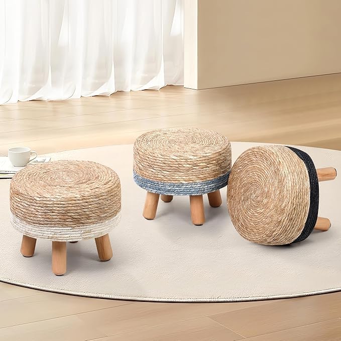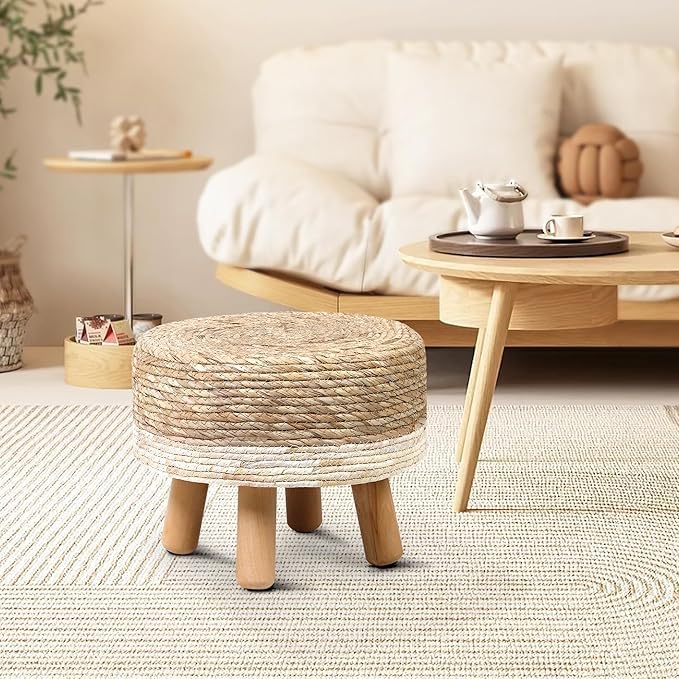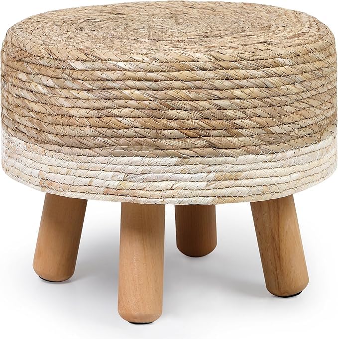 - STURDY CONSTRUCTION: Four solid pine wood legs provide stable support and durability for daily use as a footrest or decorative stool