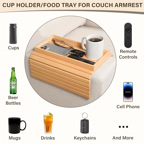 - Sofa cup made of 100% natural bamboo: The sofa holder is made of genuine A-quality bamboo, which is safe, durable, non-toxic and easy to clean with a damp cloth