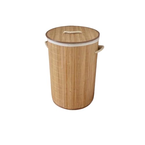 Generic - باسكت غسيل ومنظم تخزين من خشب الطبيعي – سلة ملابس وألعاب مبطنة بالقماش الكتاني المتين – منظم منزلي بمظهر ديكوري وغطاء للحماية من الأتربة
