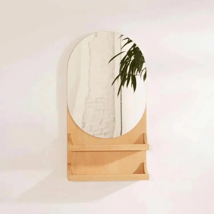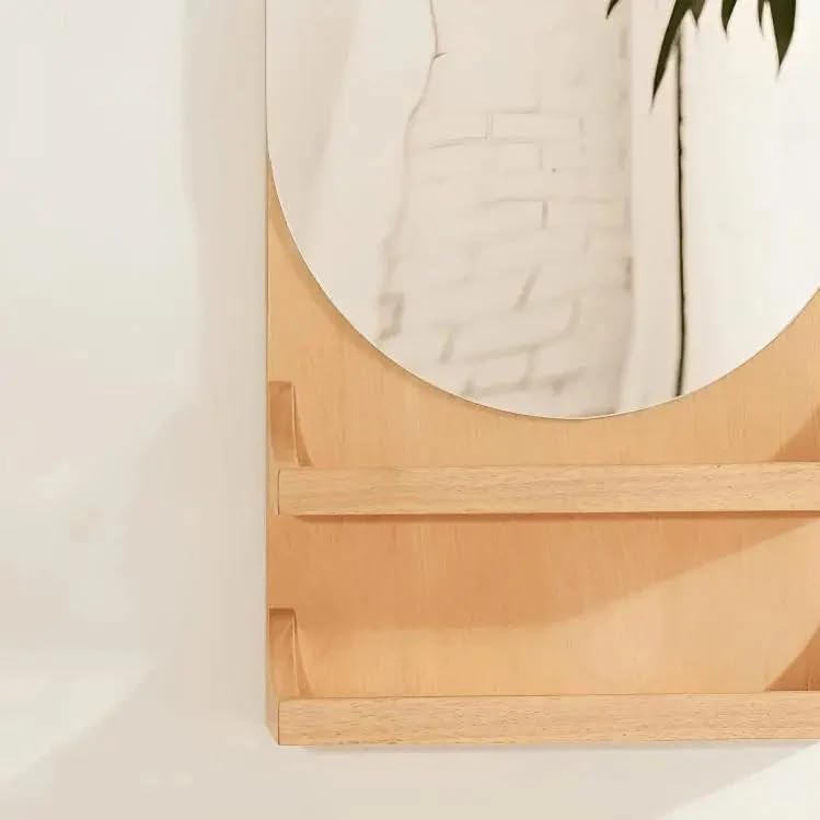 Generic - Natural Wooden Wall Mirror with Shelf, Round Arch Design, Natural Wood Finish, Modern Home Decor, Bathroom Vanity Mirror
