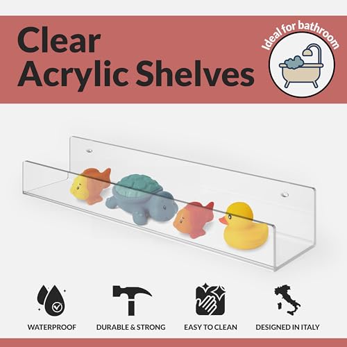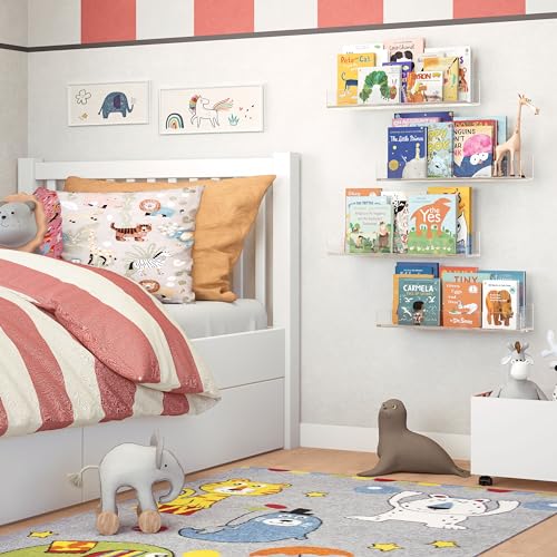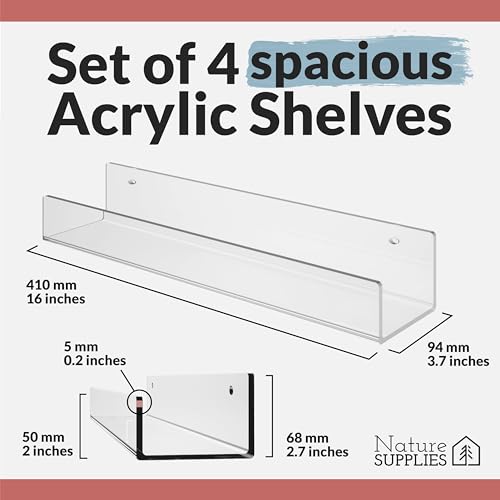 NATURE SUPPLIES - أرفف اكريليك شفافة ومتينة للجدار مصنوعة من الاكريليك الحديث، أرفف عائمة لغرفة الأطفال للكتب والألعاب من ناتشور سابلايز، مجموعة من 4 أرفف