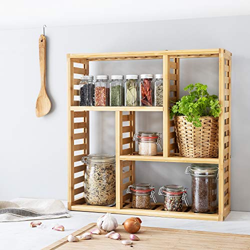 Navaris - Navaris Bamboo Organiser Shelf - Bamboo Wall Mounted Square Shelf with 5 Compartments for Bathroom, Living-Room, Hallway, Office - Modern Homeware
