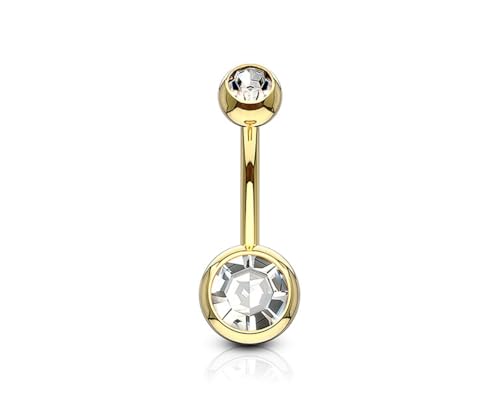 BIJOUX BEAUTIQUE - مجوهرات ثقب سرة البطن بتصميم منحني على شكل قضيب معدني - ذهبي وابيض