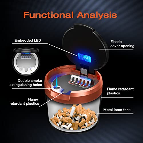 NAVESO - NAVESO Illuminated Car Ashtray, Car Ashtray with Lid and Light, Self-Extinguishing Car Ashtray, Car LED Ashtray, Easy to Clean, Removable Ashtray for Car, Office