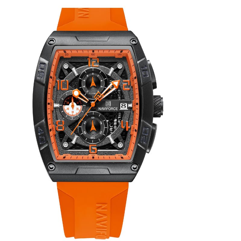 Naviforce - نافي فورس 8052 – ساعة انيقة للرجال بلون اسود/برتقالي/برتقالي