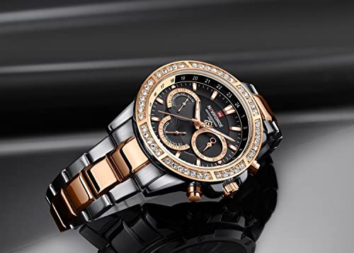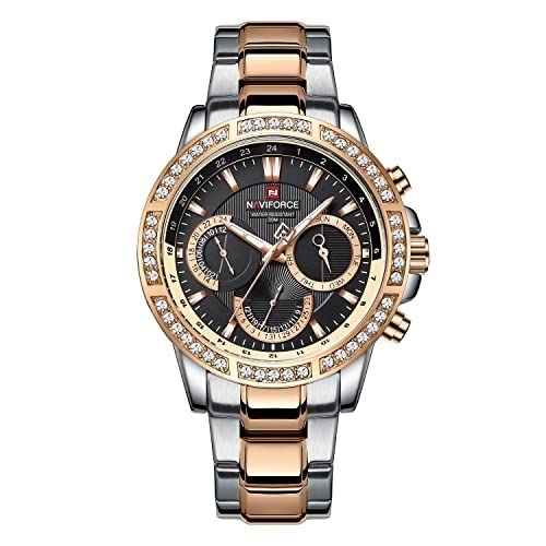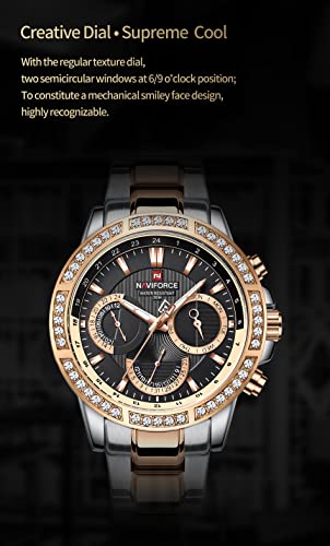 Naviforce - NAVIFORCE 9196D S-RG-B Multi-Function men wristwatch Fashion Stainless Steel 30m Waterproof quartz watches Day and Date Display