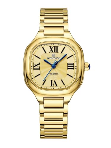 Naviforce - نافي فورس ساعة كوارتز انالوج للنساء - كرونوغراف، 3 عقارب فرعية، سوار من الستانلس ستيل، عقارب مضيئة، مقاومة للماء حتى عمق 30 متر، ذهبي