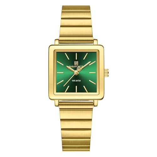Naviforce - Naviforce Analog Quartz Watch For Womens- Date Display, Leather Strap, Luminous Hands, Water Resistant 30M Gold-Green