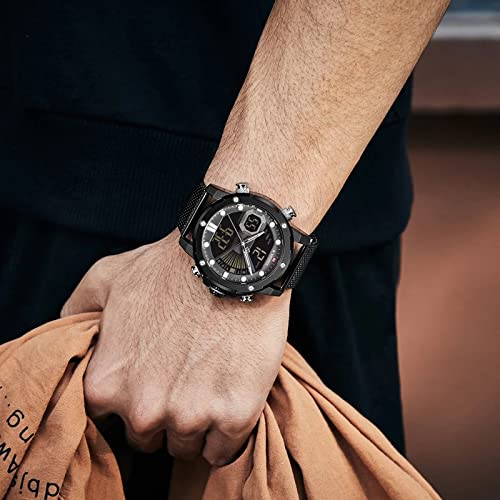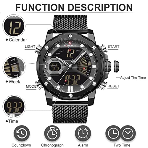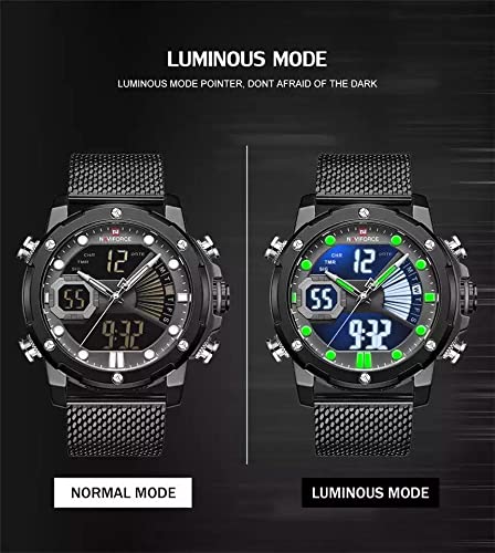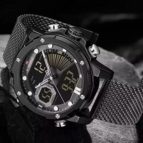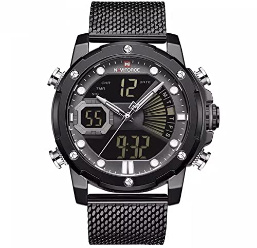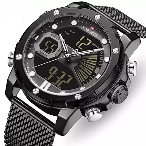Naviforce - ساعة رياضية NF-9172-2 للرجال من نافي فورس، حركة كوارتز وتصميم فاخر بسوار من الستيل المقاوم للماء عالي التحمل من الفئة العسكرية، ساعة يد ديجيتال - اسود