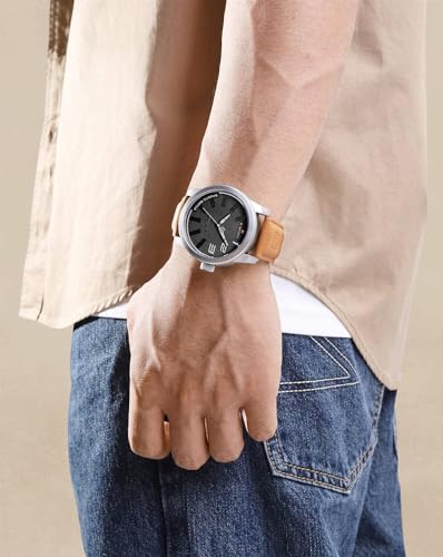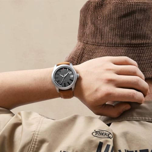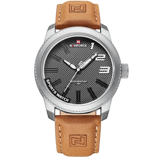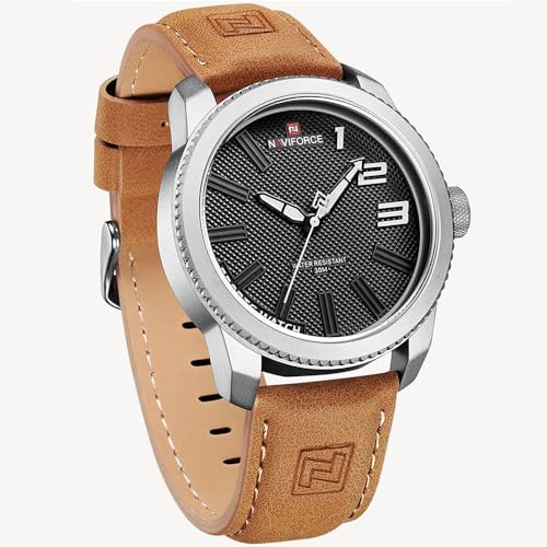 Naviforce - Naviforce Original NF9202L-S-W-L.BN Wrist Watch For Men For Dream NF9202L With Black Dial Leather Belt with Light Brown Color