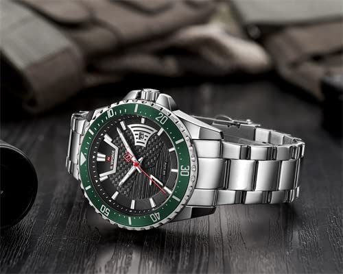 Naviforce - Naviforce Watch for Men, Quartz Movement, Analog Display, Silver Stainless Steel Strap-9191 S-S-GN