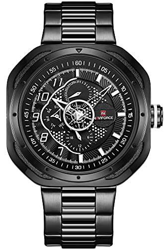 Naviforce - ساعة للجنسين بسوار فولاذ مقاوم للصدأ أسود ونظام حركة كوارتز وعرض أنالوج من نافي فورس 9141S-81L